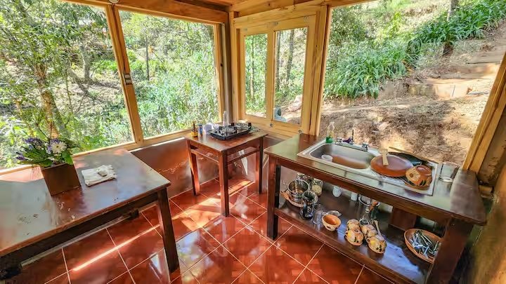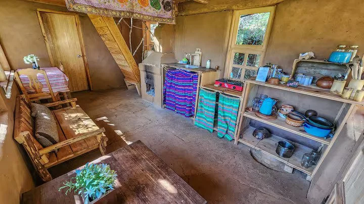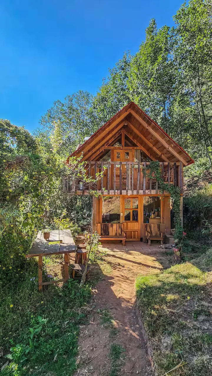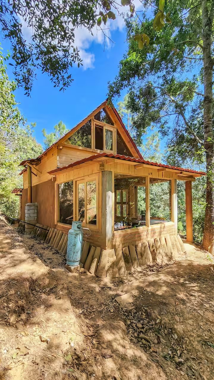 Esta cabaña es para quienes están buscando desconectarse de la ciudad y encontrar un refugio de paz y tranquilidad en la montañas de la sierra sur de Oaxaca. Es una cabaña rústica con piso de tierra y vistas increíbles hacia el bosque. Es una cabaña con una cama matrimonial y una cama individual. Cuenta con agua caliente en la ducha, cocina equipada, chimenea interior y agua potable en el grifo de la cocina. Es una cabaña ideal para disfrutar de la naturaleza y trabajar remoto.